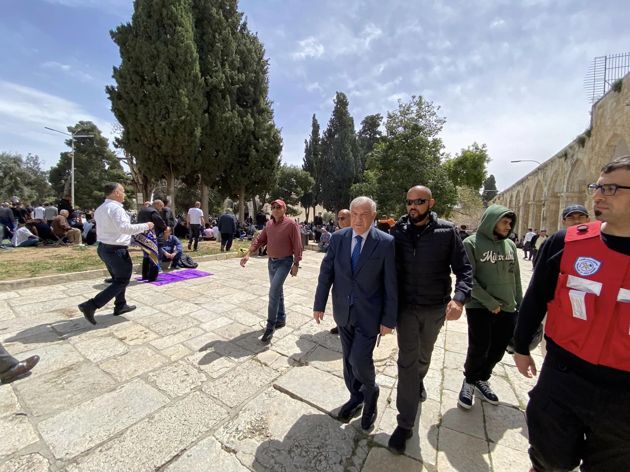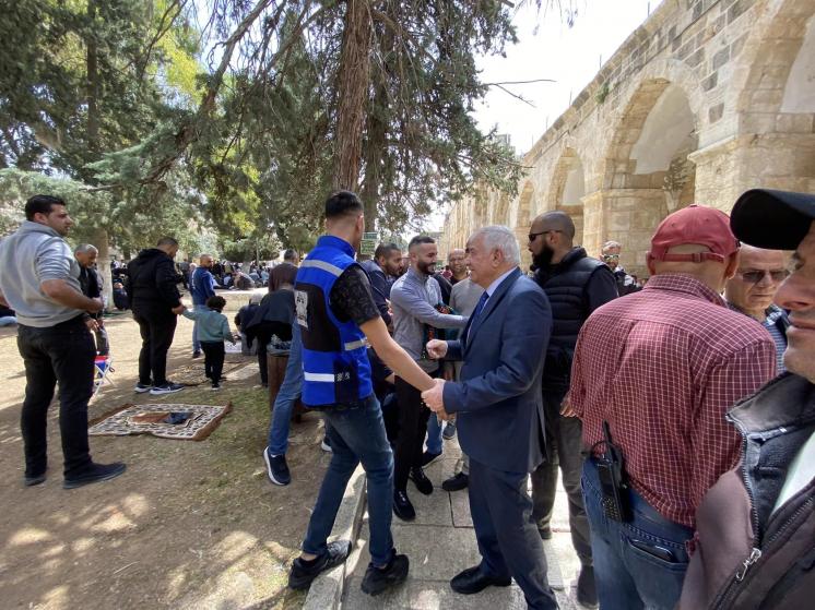 جولة تفقدية لعطوفة الشيخ عزام الخطيب مدير عام دائرة الاوقاف الإسلامية وشؤون المسجد الأقصى المبارك وبحضور سماحة الشيخ محمد حسين المفتي العام، والسيد عصام الزاغة مسؤول حرس المسجد الأقصى المبارك، والسيد عبدالله ابو طالب رئيس قسم الحراسة، والسيد نزيه سلامة رئيس قسم الإطفاء، في الجمعة الثالثة من رمضان في المسجد الأقصى المبارك.
